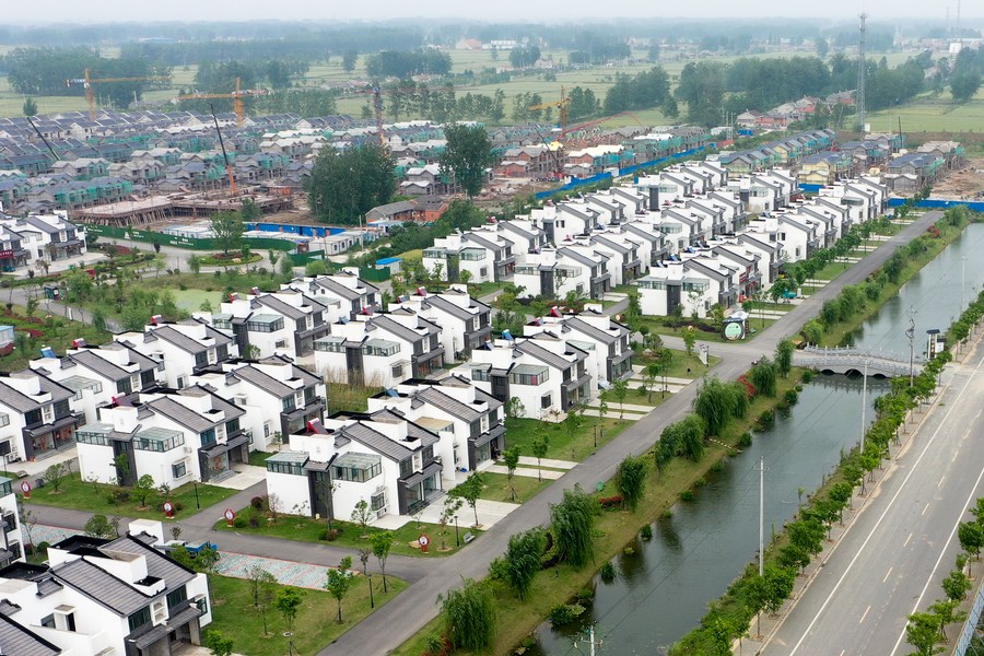 Aerial photo taken on May 11, 2020 shows residential houses built for farmers in Lyuliang Township of Jinhu County, east China's Jiangsu Province. (Xinhua/Li Bo)