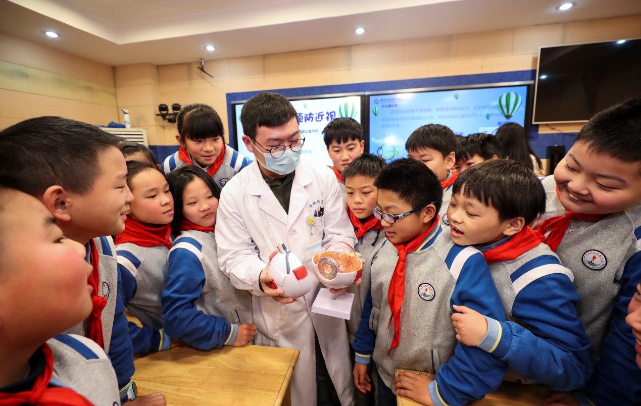 An ophthalmologist introduces eye care knowledge to students in Hefei, east China’s Anhui Province, March 3. (People’s Daily Online/Jiang Juanjuan)