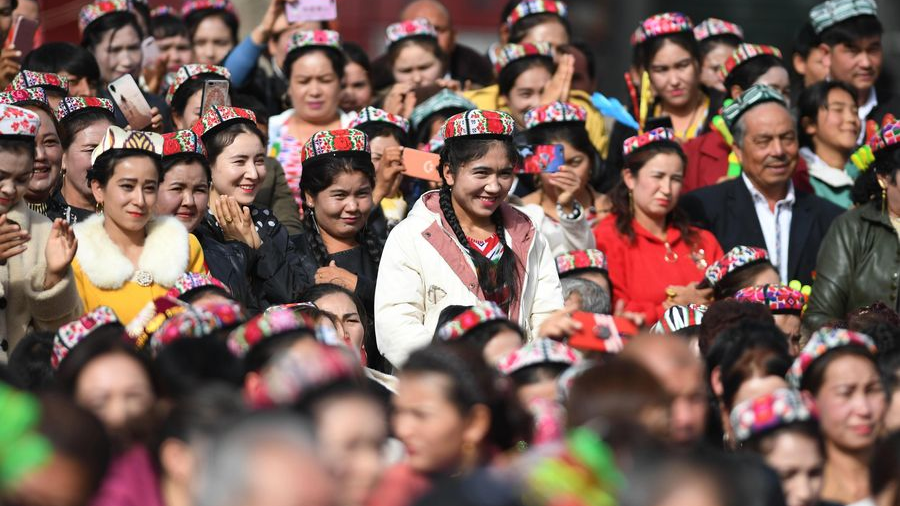 People attend a culture and tourism festival themed on Dolan and Qiuci culture in Awat County of Aksu Prefecture, Xinjiang Uygur Autonomous Region, northwest China, October 25, 2019. /Xinhua