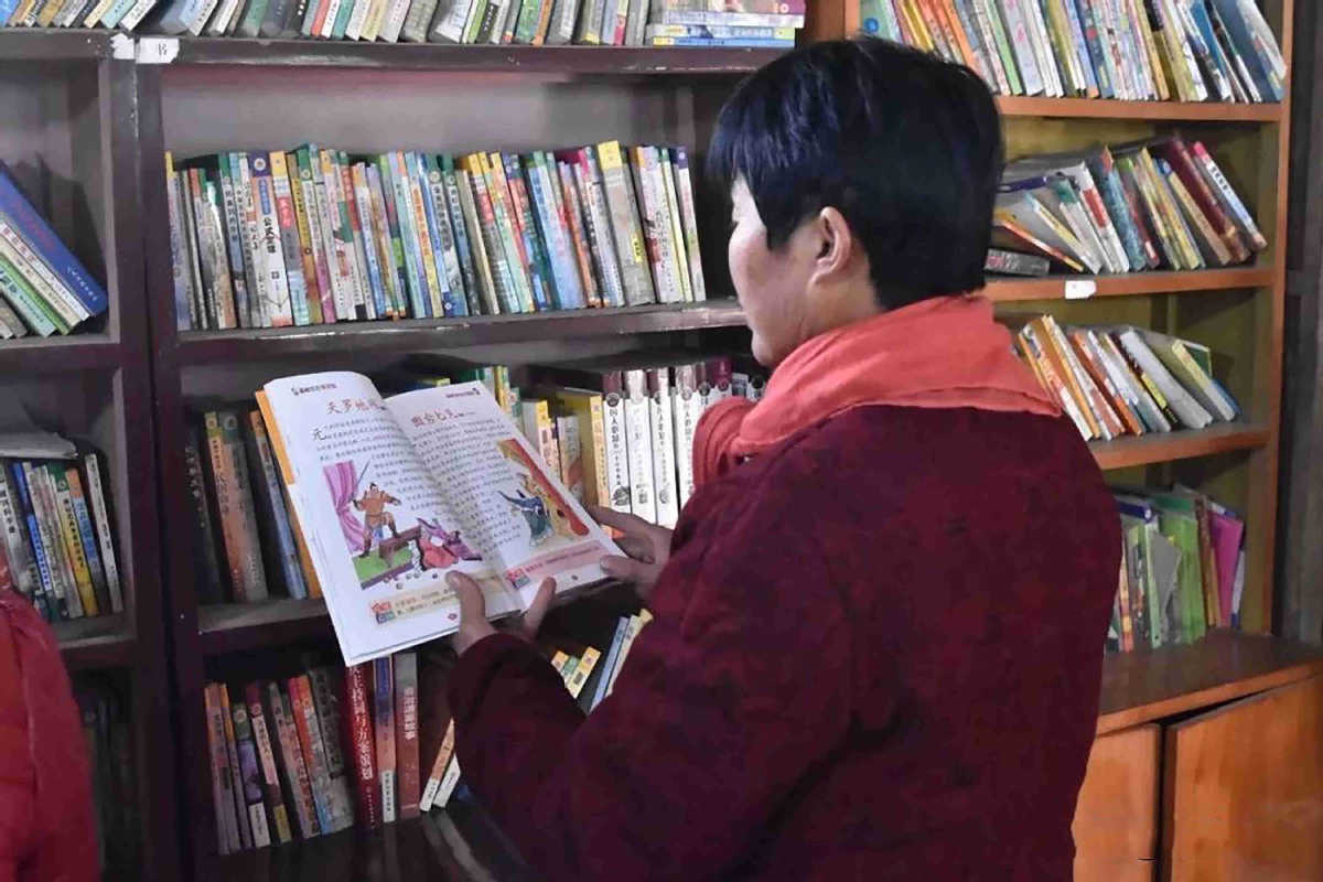A resident reads at Du Dejian's home library. [Photo provided to chinadaily.com.cn]