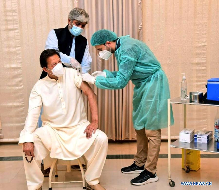 ISLAMABAD, March 18 (Xinhua) -- Days after Pakistani president received a Sinopharm vaccine jab, Pakistani Prime Minister Imran Khan on Thursday also received his COVID-19 jab with Sinopharm vaccine.
