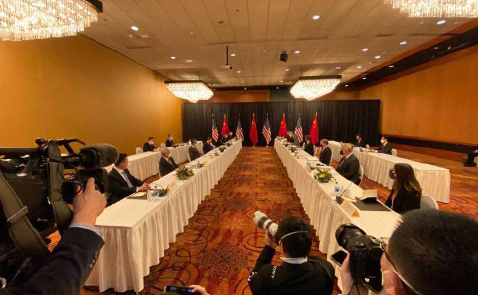 The sit-down marks the first face-to-face meeting between high-level officials of the two sides after the new U.S. administration took office. It also follows the first telephone conversation between Chinese President Xi Jinping and his U.S. counterpart, Joe Biden, after the American leader assumed office in January.