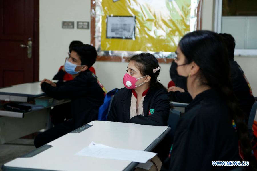 Students attend a Chinese language class at a campus of the Roots Millennium Schools in Islamabad, Pakistan, March 11, 2021. Currently, there are five Confucius Institutes and two Confucius Classrooms across Pakistan. According to the Pakistani think-tank Pakistan-China Institute, between 26,000 and 30,000 students are studying the Chinese language at various levels in Pakistan. (Xinhua/Ahmad Kamal)