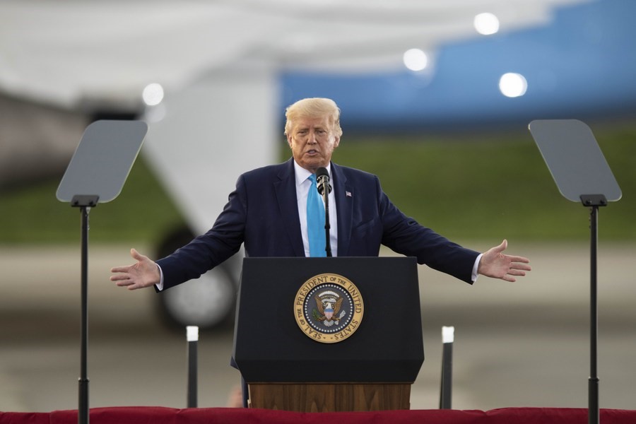 Former U.S. President Donald Trump participates in a rally in Latrobe, Pennsylvania, the United States, on Sept. 3, 2020. (Xinhua/Liu Jie)