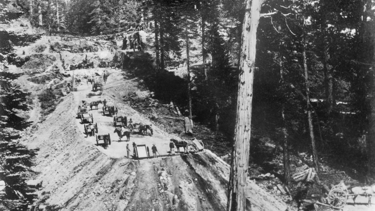 Chinese workers building a cut and a bank at Sailor's Spur in the Sierra foothills for the Central Pacific Railroad in California, 1866. (Photo/Underwood Archives)