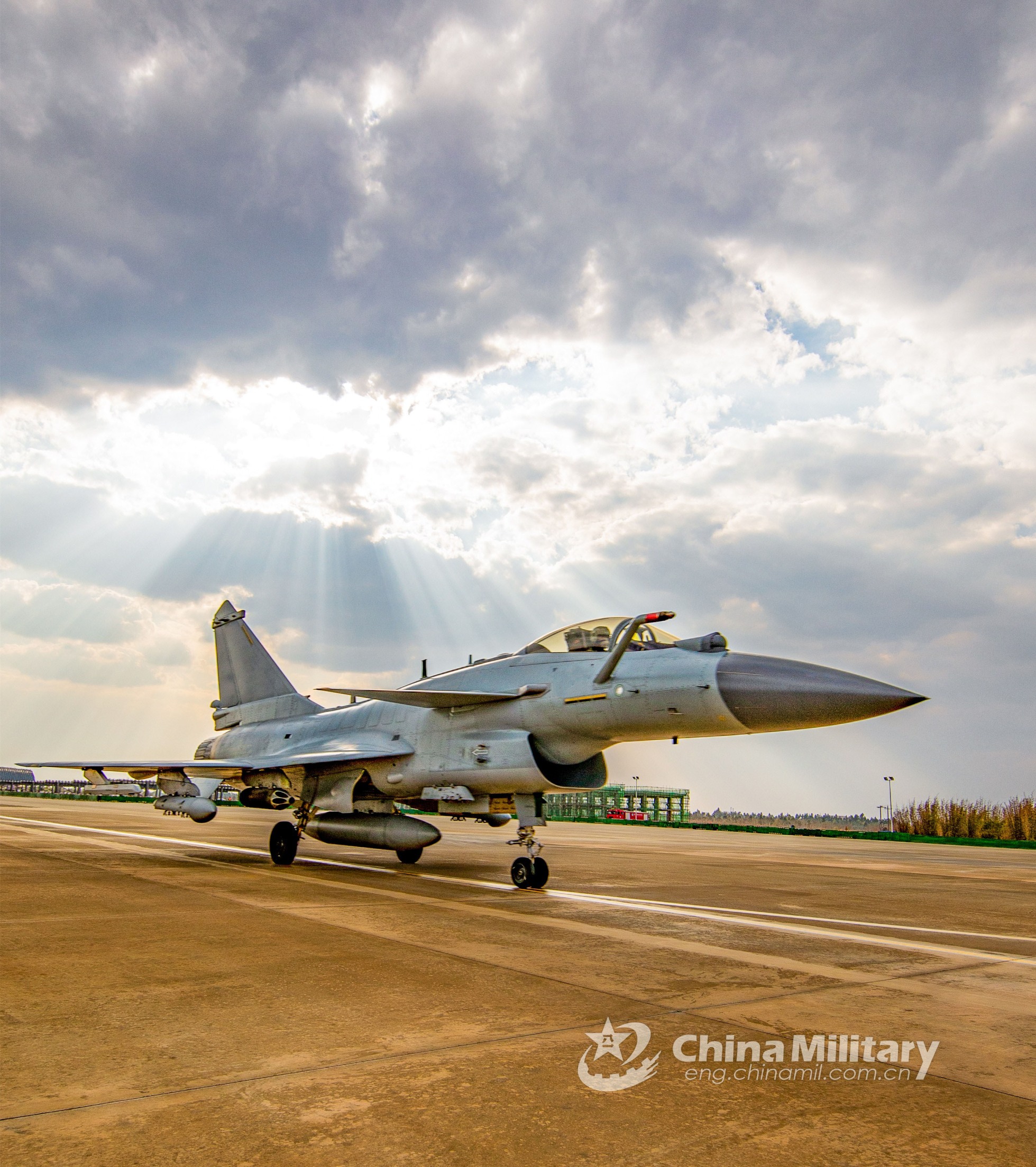 A fighter jet attached to an air force aviation brigade under the PLA Southern Theater Command lands on the runway after the flight training exercise under marginal meteorological condition in late February, 2021. (eng.chinamil.com.cn/Photo by Wang Guoyun)