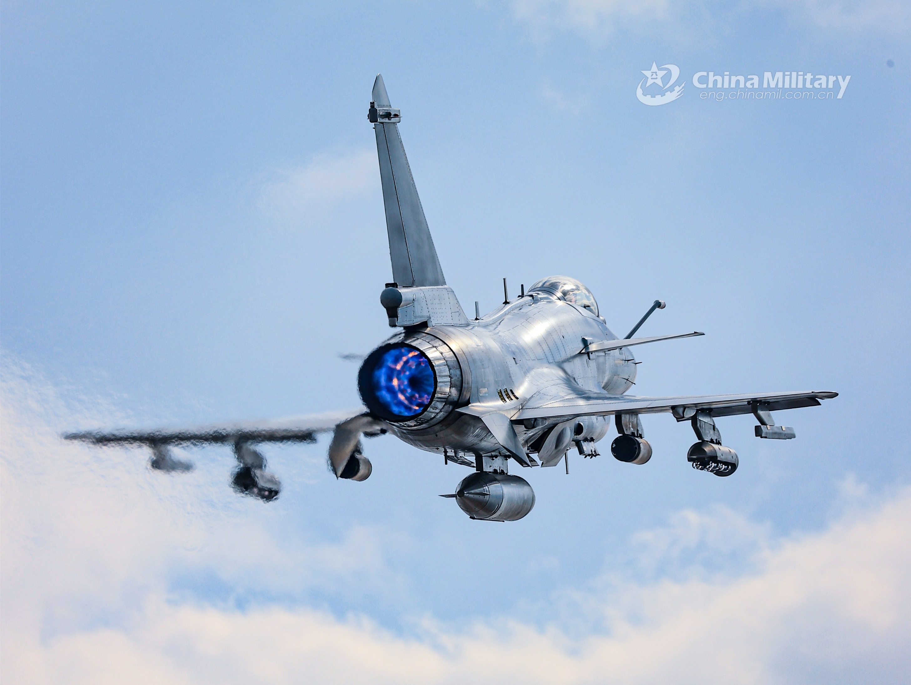 A fighter jet attached to an air force aviation brigade under the PLA Southern Theater Command takes off during the flight training exercise under marginal meteorological condition in late February, 2021. (eng.chinamil.com.cn/Photo by Wang Guoyun)