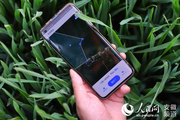 A major grain grower shows the scope of his farmland on his mobile phone in Mengcheng county, east China's Anhui province. (People's Daily Online/Yang Saijun)
