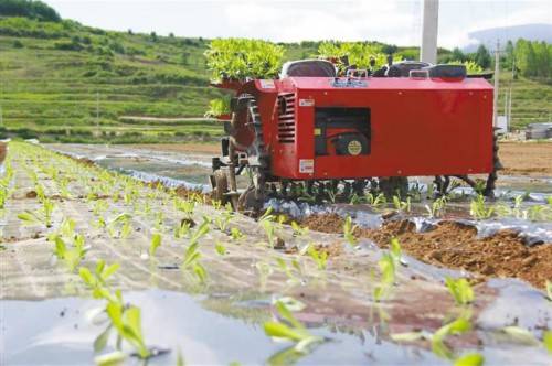 Photo shows a transplanter growing vegetables in a field in Taibai county, northwest China's Shaanxi province. (Photo/Shaanxi Daily)