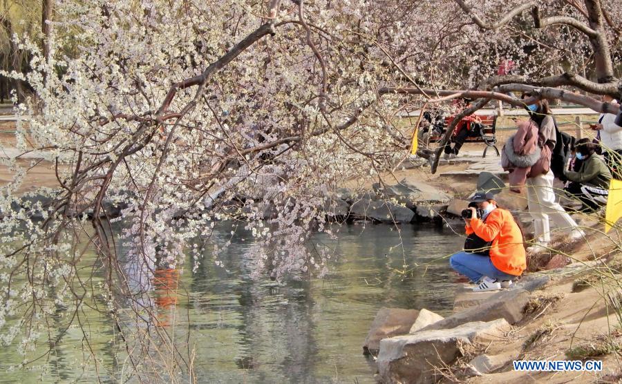 Tourists view peach blossoms at the Summer Palace in Beijing, capital of China, March 22, 2021. (Xinhua/Li Xin)