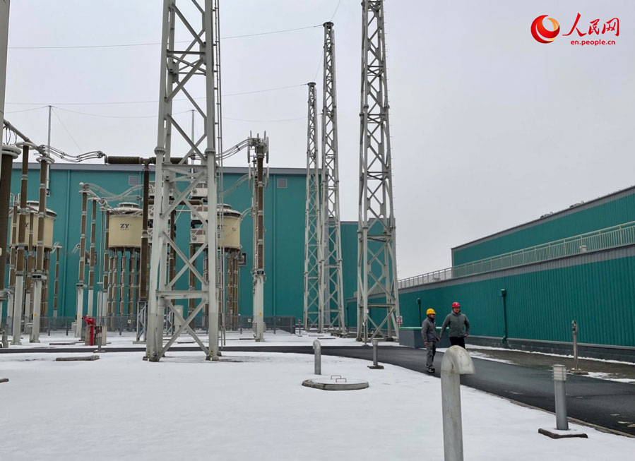 Photo taken on March 18, 2021 shows the Zhangbei flexible direct current (DC) power grid project in Zhangjiakou, north China's Hebei Province. It is the world's first DC power grid and will be able to deliver about 14 billion kilowatt-hours of clean energy per year. The project will guarantee a 100 percent green power supply for the Beijing 2022 Winter Olympic venues. (People's Daily Online/Wu Chaolan)