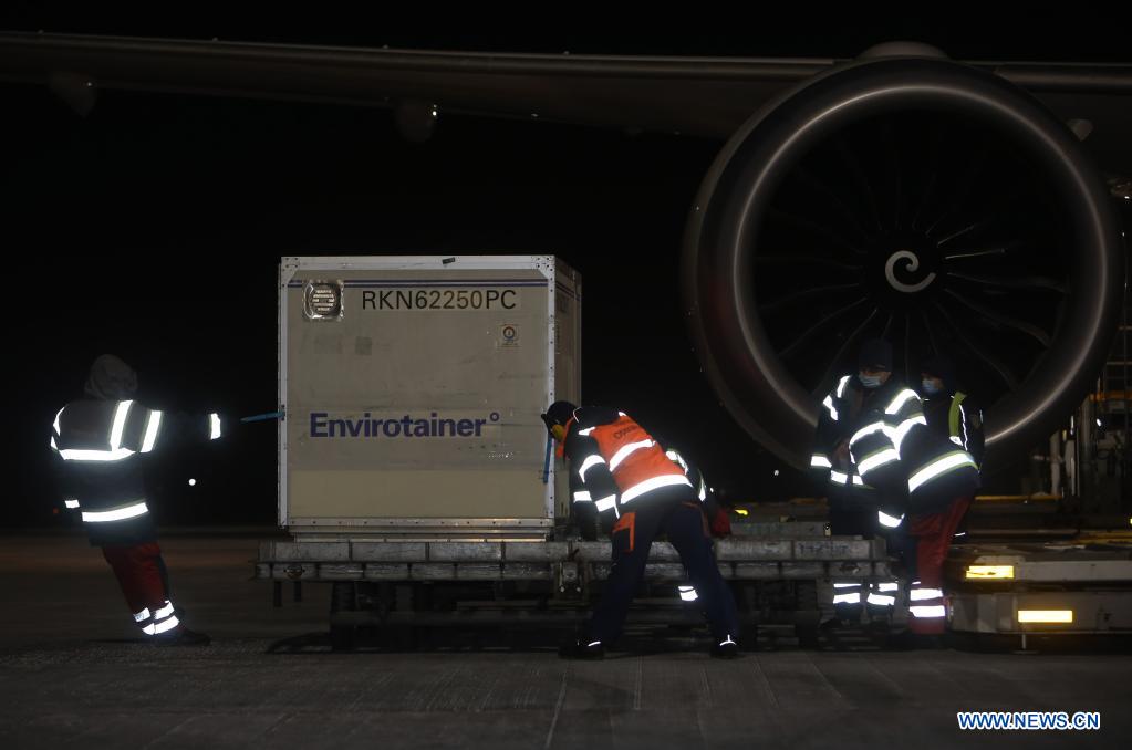 KIEV, March 25 (Xinhua) -- A plane with the first batch of CoronaVac vaccine produced by Chinese company Sinovac Biotech arrived in Ukraine on Thursday night amid the rapid surge of COVID-19 infections in the country.