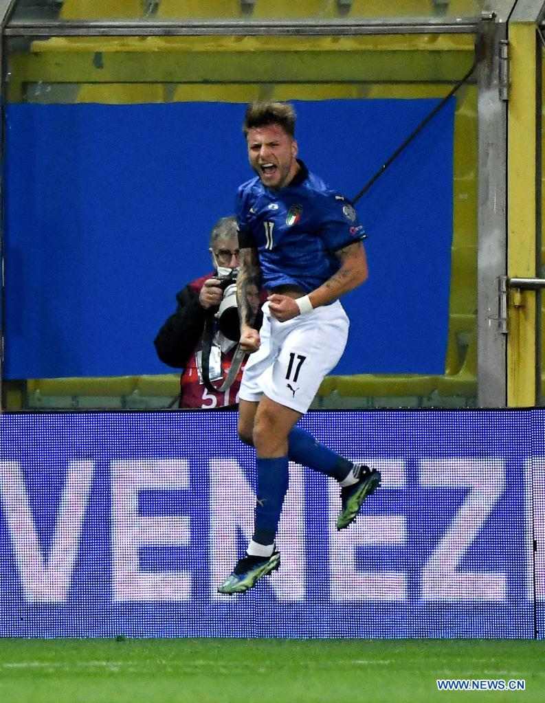 Italy's Ciro Immobile celebrates during the FIFA World Cup 2022 qualifier Group C match between Italy and Northern Ireland in Parma, Italy, March 25, 2021. (Xinhua)