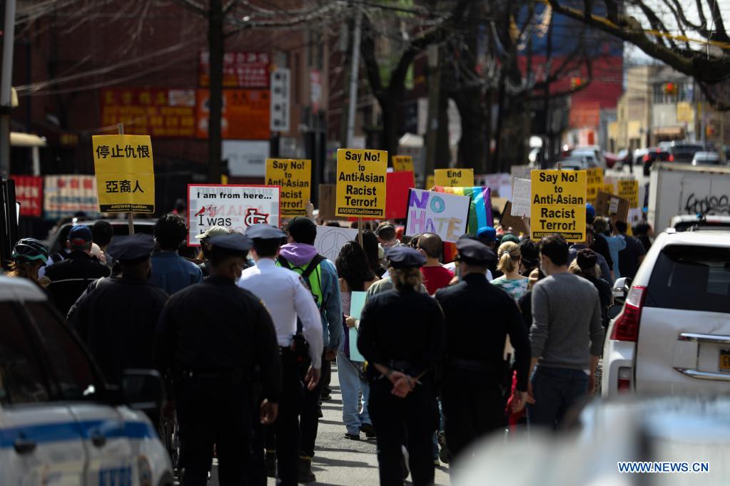 NEW YORK, March 27 (Xinhua) -- Hundreds of New Yorkers from different races on Saturday afternoon rallied against racism and violence on Asian Americans, according to U.S. anti-racism and anti-war organization the ANSWER Coalition.