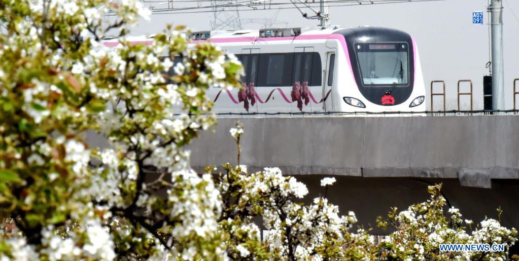 A train runs on Subway Line 1 in Luoyang, central China's Henan Province, March 28, 2021. Luoyang Subway Line 1, with a length of about 25km and 19 stations, was put into operation on Sunday. (Photo by Zhang Yixi/Xinhua)