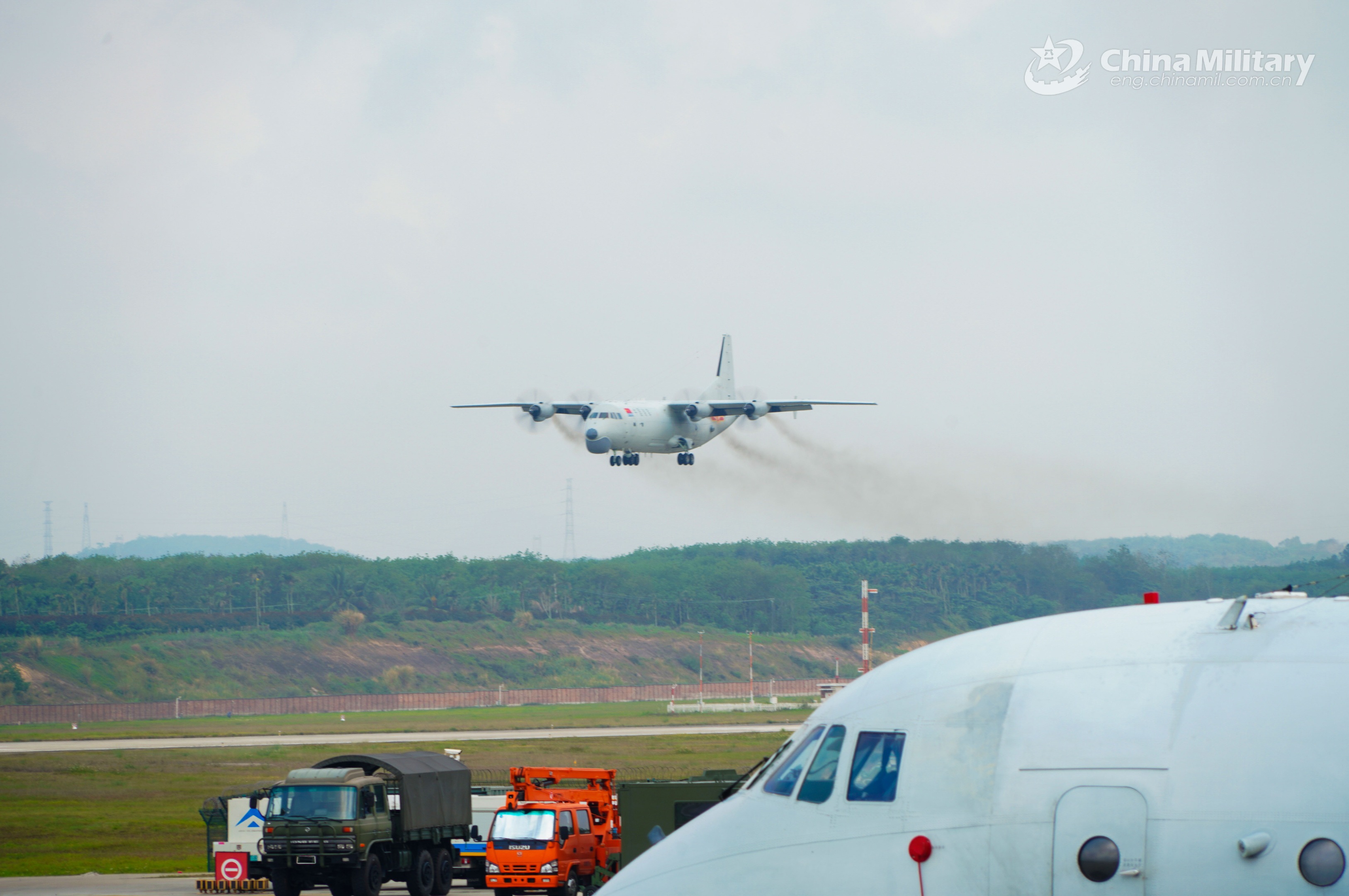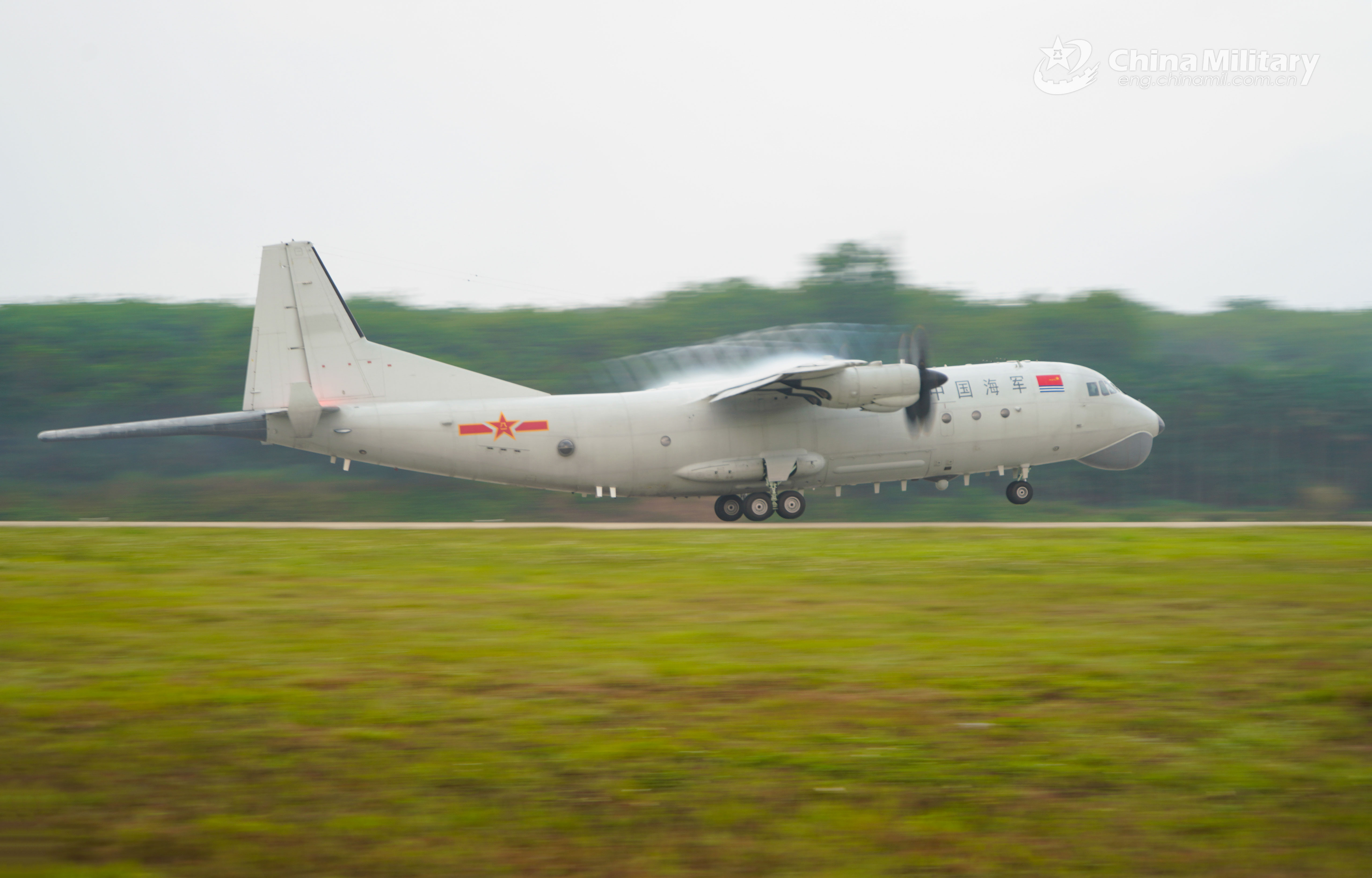 An anti-submarine patrol aircraft attached to an aviation regiment of the navy under the PLA Southern Theater Command takes off during an anti-submarine training exercise on March 15, 2021. (eng.chinamil.com.cn/Photo by Qin Qiangjiang)