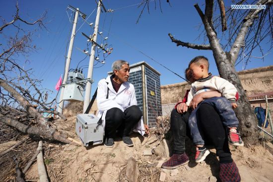 Zhang Shangbao (L) talks with villagers in Tietou Village of Shilou County, north China's Shanxi Province, March 23, 2021. Zhang, 61, who has only one hand, has been walking through the mountains day after day since 1976, safeguarding the health of the locals. There are more than 600 villagers living in 5 hamlets of Tietou Village tucked away in the Lyuliang Mountains. In the past, it was difficult to access healthcare, which had plagued the masses here for a long time. In 1976, Zhang Shangbao graduated from a health school at the age of 16 and returned to his hometown to work as a village doctor. From then on, Zhang started his life staying on call around the clock to see patients. Unfortunately, Zhang lost his right hand in an accident when he was 35. With the tenacity of not bowing to fate, he quickly mastered the skills of living on his own. Through repeated practice, Zhang also learned how to inject fluids, vaccinate and fill in health records with his left hand. Last April, Zhang Shangbao reached retirement age, but he chose to continue with his work. "As long as the villagers need me," He said, "I will stick to my post." (Xinhua/Zhan Yan)