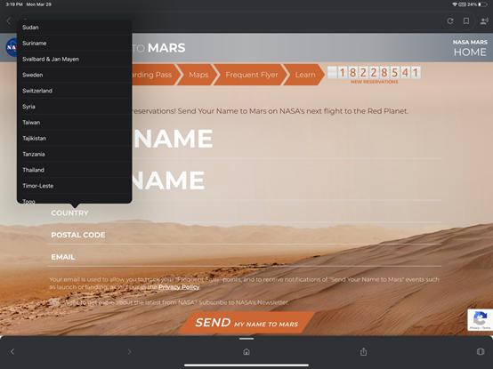 The initiative, which is open to netizens worldwide who can sign up to have their names sent into space on NASA's future Mars mission, has attracted over 18 million participants around the globe as of press time. Over 4 million applicants from the Chinese mainland, as well as more than 130,000 from Hong Kong, Macao and Taiwan have signed up for the initiative, making China the top country on NASA's list of name submissions.