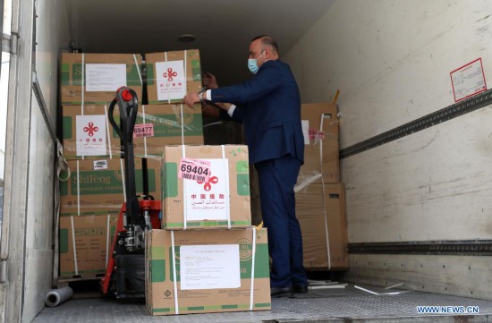 A Palestinian man prepares to unload the Sinopharm COVID-19 vaccines in the West Bank city of Ramallah, on March 29, 2021. China on Monday handed over a batch of donated Sinopharm COVID-19 vaccines to Palestine to support its nationwide fight against the pandemic. (Photo by Ayman Nobani/Xinhua)