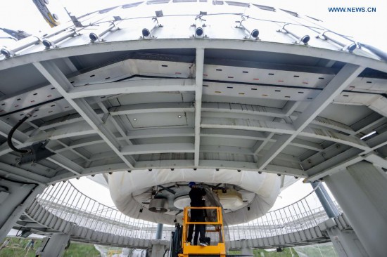 Staff carry out regular maintenance operation to FAST in Guizhou