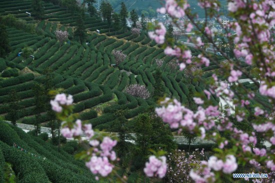 Cherry blossoms seen in tea garden in Hangzhou (10)