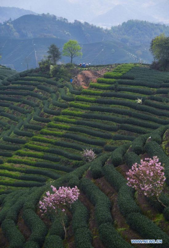Cherry blossoms seen in tea garden in Hangzhou (3)