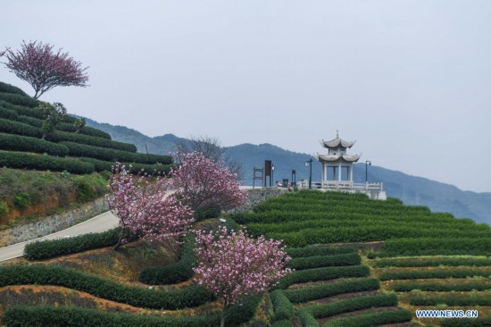Cherry blossoms seen in tea garden in Hangzhou (5)
