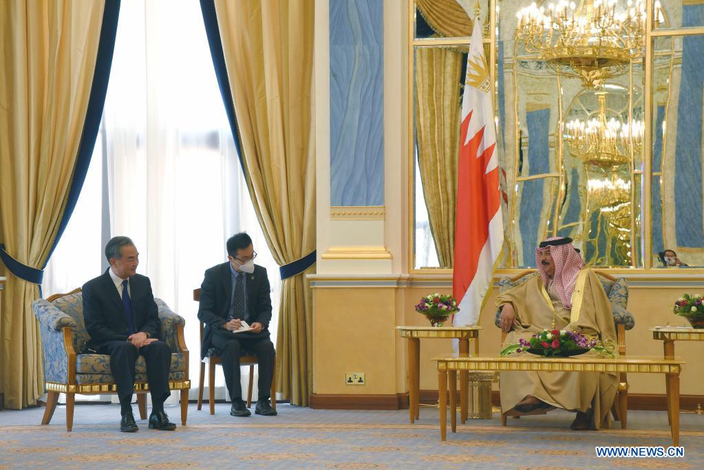 Wang made the remarks during a meeting with Bahrain's King Hamad bin Isa Al Khalifa in Bahrain's capital Manama. He conveyed Chinese President Xi Jinping's kind regards to King Hamad.