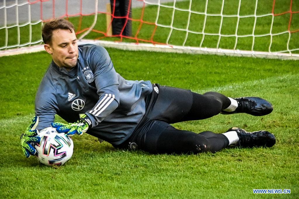 Goalkeeper Manuel Neuer of Germany attends a training session in Dusseldorf, Germany, March 30, 2021. Germany is to play against North Macedonia in a FIFA 2022 World Cup qualifier match in Germany's Duisburg on March 31. (Photo by Ulrich Hufnagel/Xinhua)