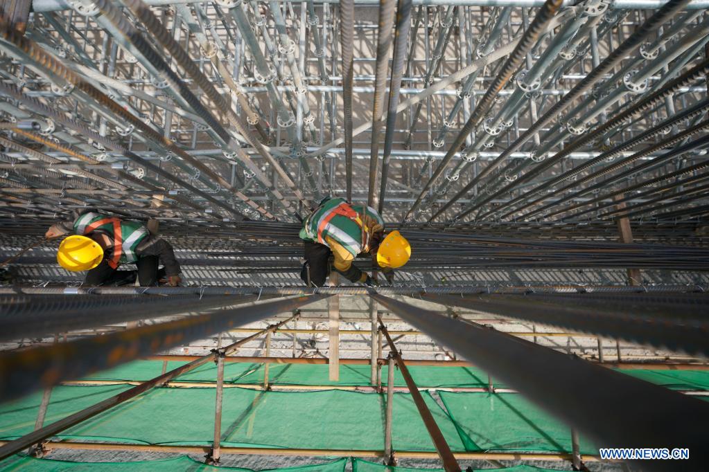 People work at a construction site of municipal supporting facilities at Rongdong area of Xiongan New Area, north China's Hebei Province, March 30, 2021. (Xinhua/Xing Guangli)