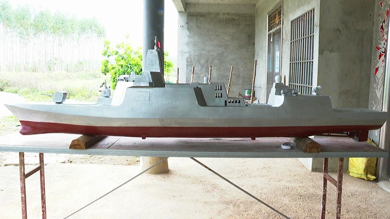 A warship model built by a villager in southwest China's Guangxi Zhuang autonomous region has made a successful maiden voyage, during which it was seen moving forward and backward, making turns, and picking up speed easily.