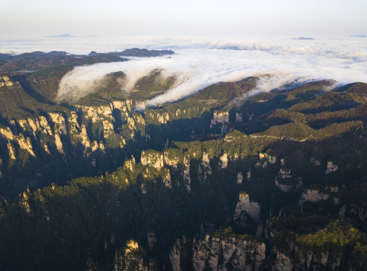 The park in Zhangjiajie, Hunan province, is a world natural heritage site, a global geopark and China's first national forest park. [Photo by Zhou Jianxin/for chinadaily.com.cn]