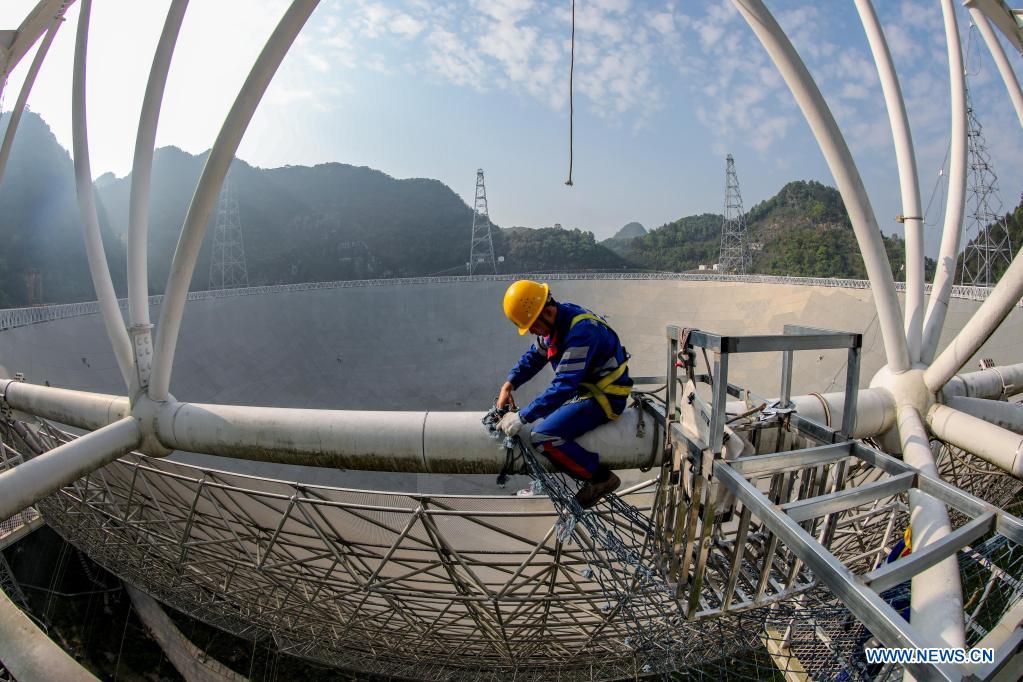 - Staff carry out regular maintenance operation to FAST in Guizhou