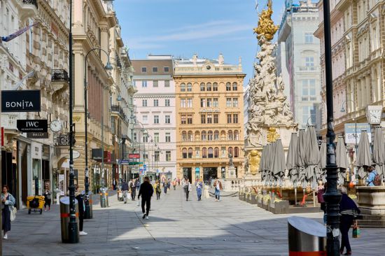 People walk on a street in downtown Vienna, Austria, on April 1, 2021. (Photo by Georges Schneider/Xinhua)