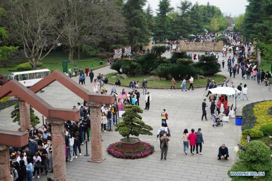 People wait to be admitted to an exhibition hall at the Sanxingdui Museum in Guanghan City, southwest China's Sichuan Province on April 4, 2021. The major discoveries made recently by archaeologists at the legendary Sanxingdui Ruins site in Sichuan have triggered wide interest among the general public in China, and many of them chose to visit the Sanxingdui Museum during the three-day Qingming holiday. (Xinhua/Liu Mengqi)