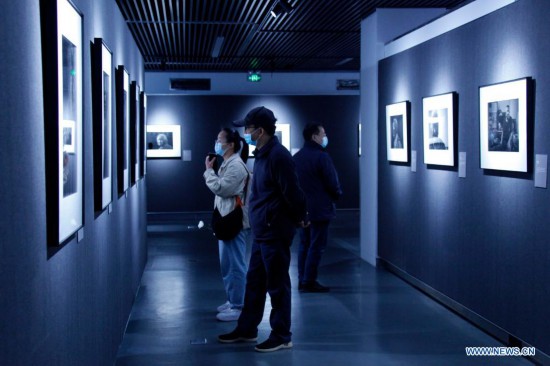 People visit a photo exhibition on Nanjing Massacre survivors at the Memorial Hall of the Victims in Nanjing Massacre by Japanese Invaders, in Nanjing, east China's Jiangsu Province. The exhibition kicked off here on Sunday. (Photo by Sun Zhongnan/Xinhua)