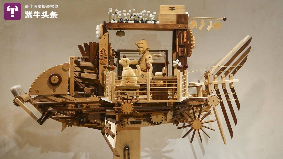 A former victim of depressive disorder has finally found the cure to his mental illness -- over the past two years, he produced a total of 50 to 60 hand-cranked wooden automata. One of them had an exquisite design that was particularly eye-catching to netizens - a fish-shaped airship.