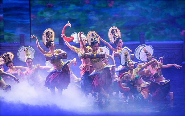 Flower Rains along the Silk Road is staged at Dunhuang Grand Theater on Thursday. [Photo by Wang Binyin/provided to chinadaily.com.cn]