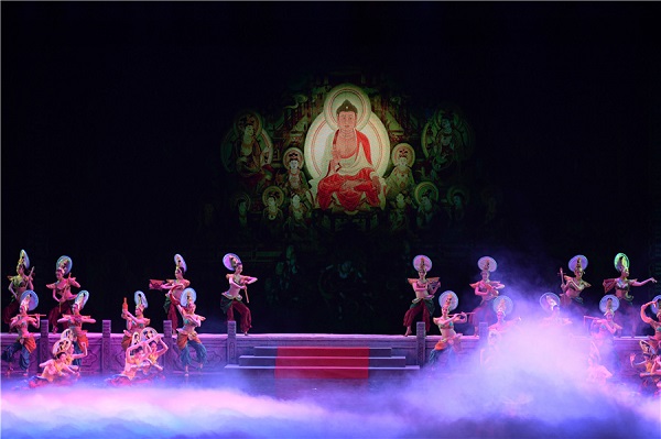 Flower Rains along the Silk Road is staged at Dunhuang Grand Theater on Thursday. [Photo by Wang Binyin/provided to chinadaily.com.cn]
