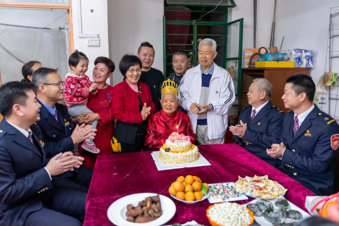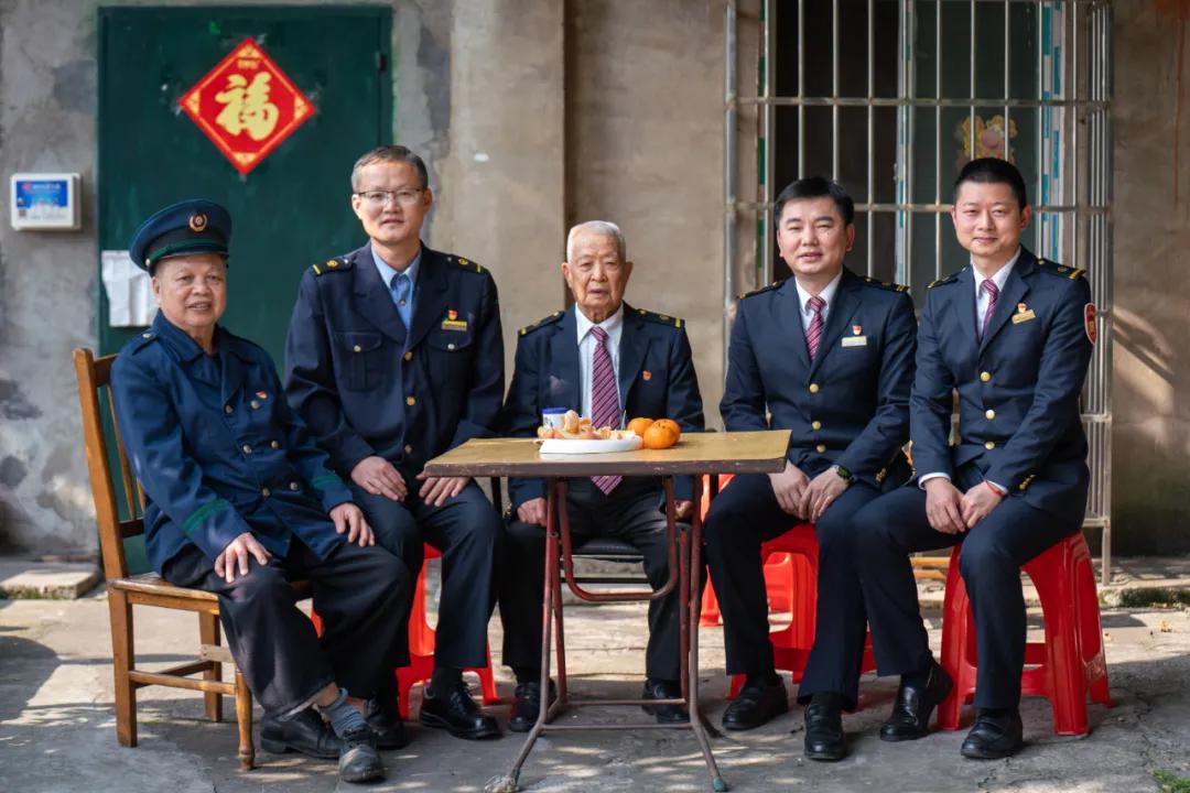 Photo shows the five generations of train drivers spanning 66 years, with Ren Zhongde, 100 years old, at the center. (Photo/China State Railway Group Co., Ltd.)