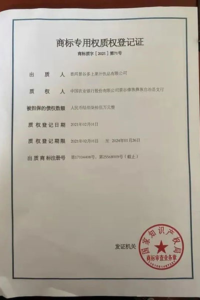 In early February 2021, Pu’er Jinggu MORE IS UP Co., Ltd. successfully obtained a loan of RMB 5 million from Agricultural Bank of China Co., Ltd., Jinggu Dai and Yi Autonomous County Sub-branch with its trademark “MPRE IS UP”, which solved the capital operation problem of the company quickly.