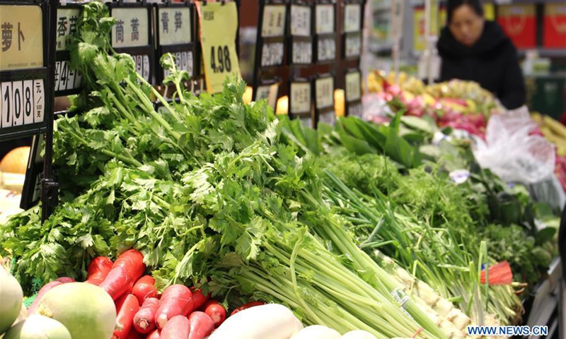 A citizen buys vegetables at a supermarket in Handan City, north China's Hebei Province, Jan. 9, 2020. (Photo: Xinhua)