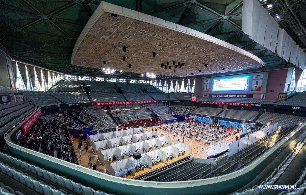 People receive COVID-19 vaccine at a vaccination site in Gulou District of Nanjing, east China's Jiangsu Province, April 9, 2021. East China's Jiangsu Province has launched a mass vaccination campaign against COVID-19. (Xinhua/Li Bo)
