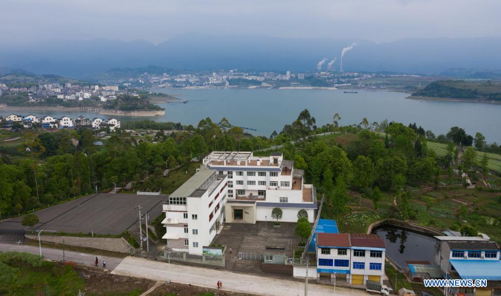 Aerial photo taken on April 11, 2021 shows the Zhongxian station, a field station of Institute of Mountain Hazards and Environment, Chinese academy of sciences (CAS) in the Three Gorges Reservoir area in Zhongxian County, southwest China's Chongqing. The Three Gorges project is a vast multi-functional water-control system on the Yangtze River, China's longest waterway, with a 2,309-meter-long and 185-meter-high dam. The water levels of the reservoir area inevitably fluctuate on an annual discharge-storage cycle between 145m to 175m at the dam. The water level fluctuation zone also encounters some eco-environmental problems, including soil erosion and non-point source pollution. Researchers of the Institute of Mountain Hazards and Environment, Chinese Academy of Sciences (CAS) have conducted comprehensive investigations on soil, plants, hydrology, water quality and sediment in the area. Their study has important implications on better running the function of the Three Gorges Reservoir and the safety of local ecological environment. (Xinhua/Jin Liwang)
