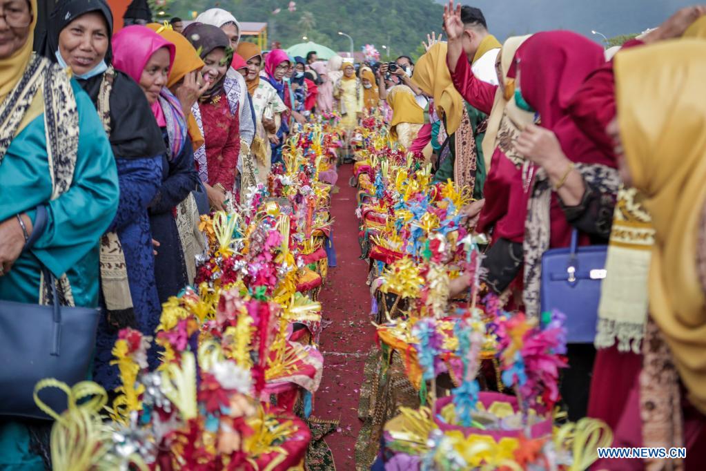 Indonesian women participate in a traditional ceremony for the upcoming holy month of Ramadan at Painan Village, West Sumatra, Indonesia, April 12, 2021. (Photo by Yuka Fainka/Xinhua)