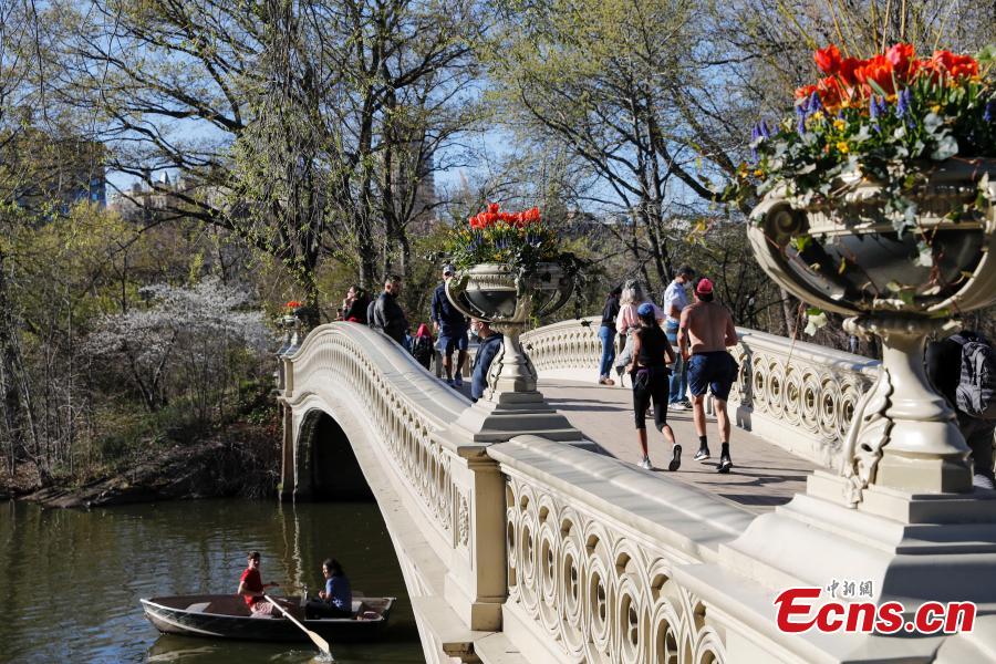 People enjoy the spring scenery in Central Park in New York, the U.S., April 13, 2021. (Photo: China News Service/Liao Pan)