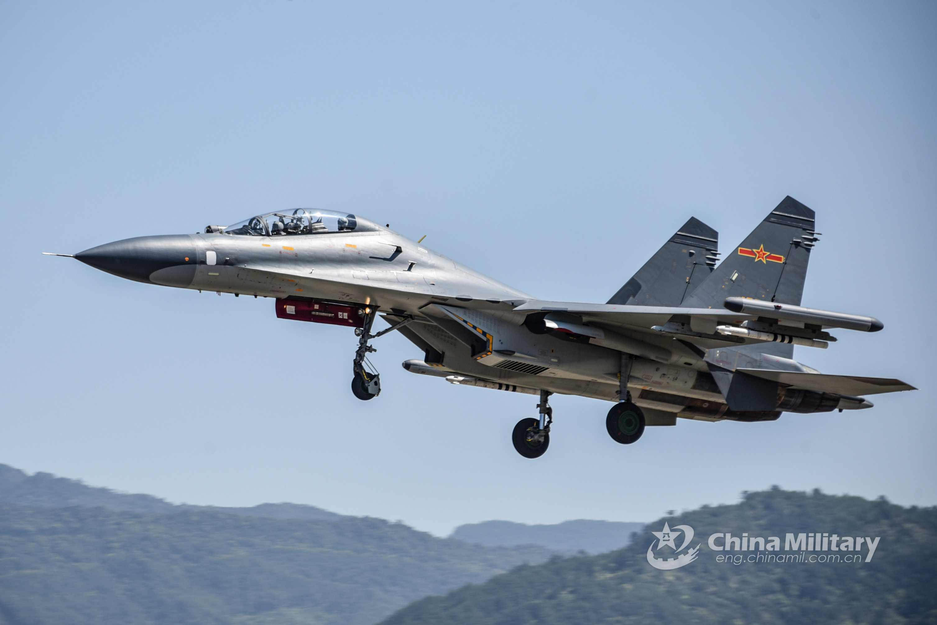 A fighter jet attached to an air force aviation brigade under the PLA Eastern Theater Command practices preset attack and defense tactical objectives during a flight training exercise in late March, 2021. (eng.chinamil.com.cn/Photo by Fu Gan)