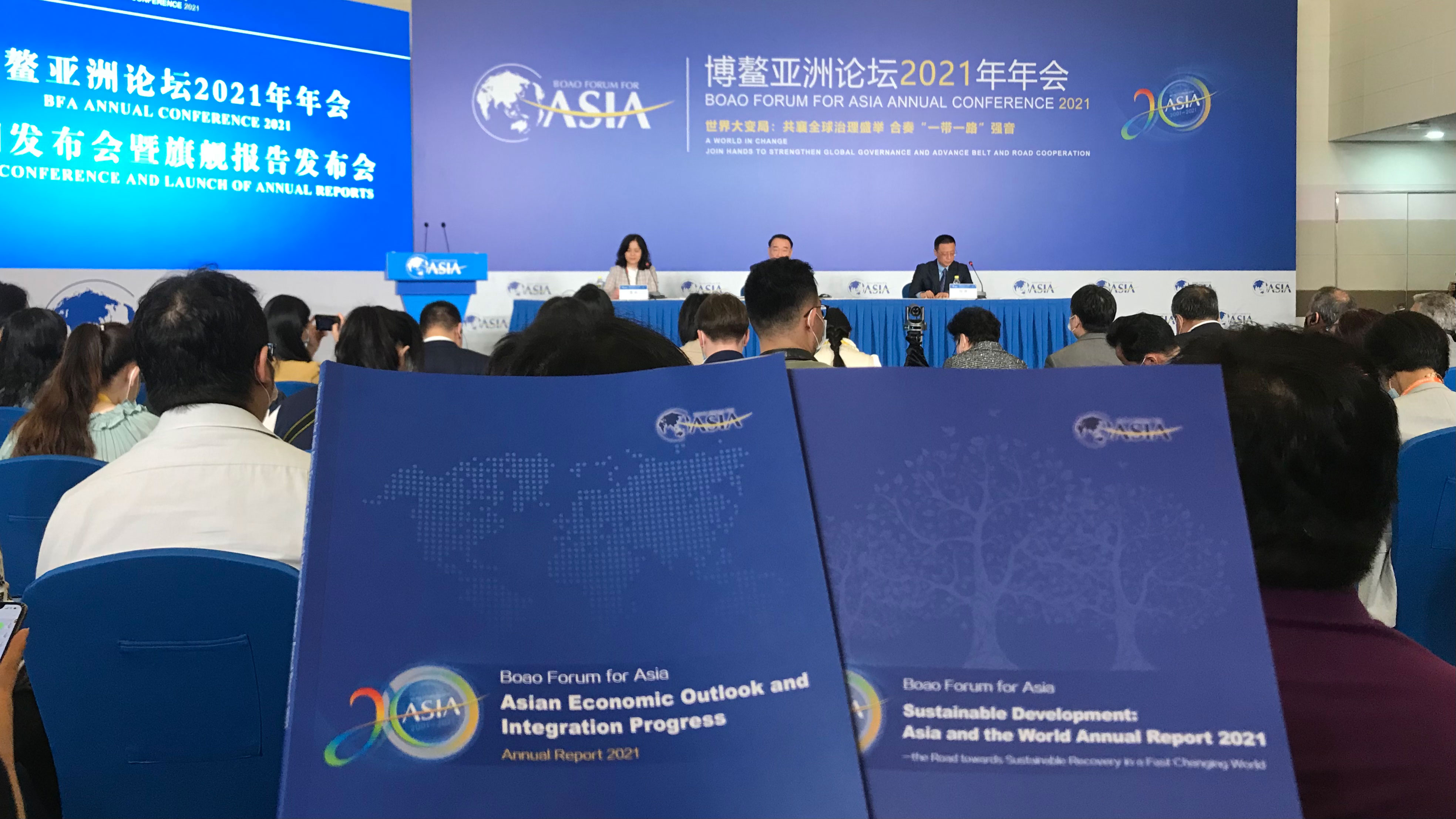 Boao Forum for Asia publishes two annual reports, in Boao, south China's Hainan Province, April 18, 2021. Wang Tianyu/CGTN