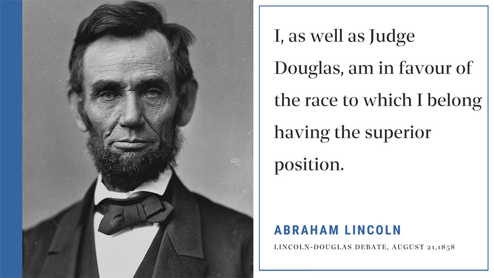 Abraham Lincoln, issuer of The Emancipation Proclamation, publicly claimed that he was “in favor of the race to which I belong having the superior position,” and signed off on an execution order to hang 38 Dakota in what became the largest mass execution in US history.