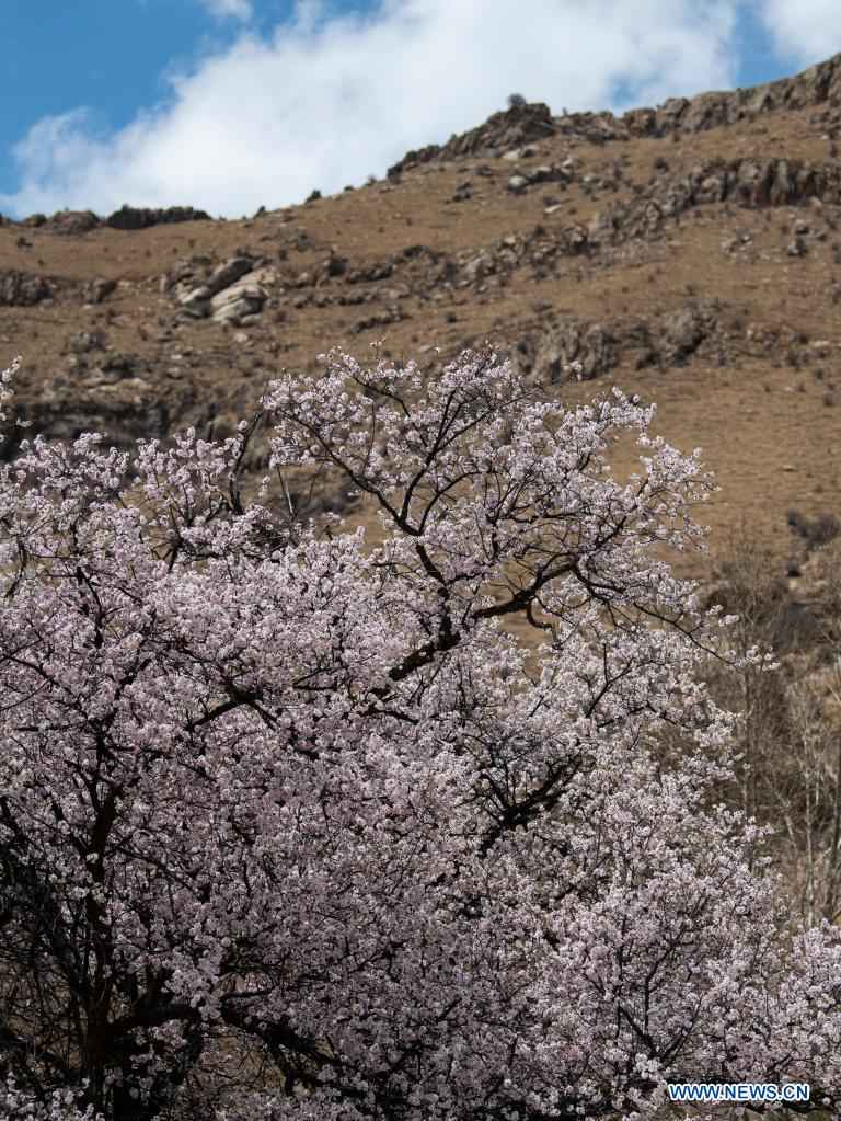 Peach blossoms seen in Lhasa, China's Tibet